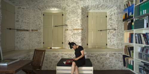 La bibliothèque soit située à Bodrum car nous avons décidé, mon épouse et moi-même, de continuer le reste de notre vie ici. Bodrum est une petite ville et l'environnement architectural est très actif en raison de la forte demande de construction. Il y a plus de 300 architectes ici. L'accès à l'information est désormais un processus très simple sur Internet et ne nécessite pas de bibliothèque physique. Pourtant, c'est une passion complètement différente d'étudier, de toucher et de lire des livres et des documents originaux. N'est-ce pas passionnant qu'une maison de Bodrum, avec une histoire de plus d'un siècle, soit entourée de livres, même pour une petite escapade professionnelle? Je voulais créer et garder cette excitation vivante. Notre nombre total de livres, magazines et documents originaux dépasse les vingt mille. L'architecture, l'histoire, les villes et les produits d'art se trouvent dans cette bibliothèque."