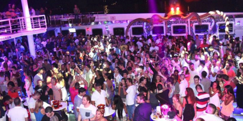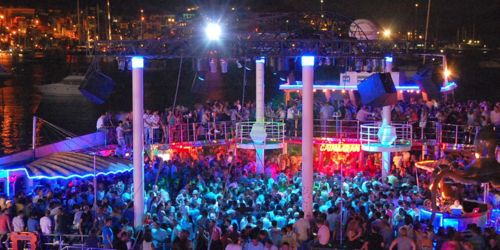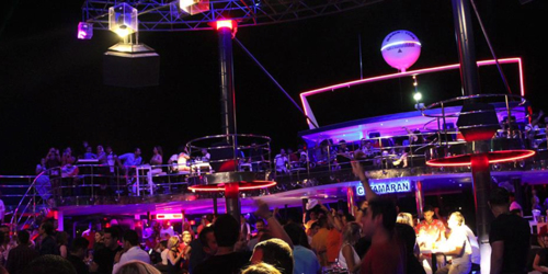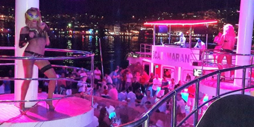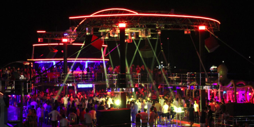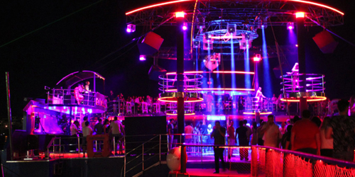 La grande piste de danse en verre offre la possibilité de regarder la mer et les poissons tout en dansant. Le catamaran offre à ses clients, non seulement, des opportunités de musique et de danse dans un environnement unique, mais aussi des spectacles "live" qui sont uniques chaque soir.