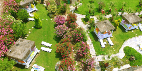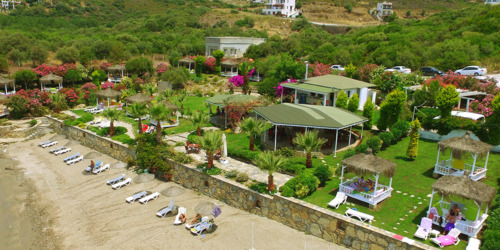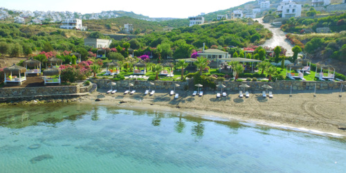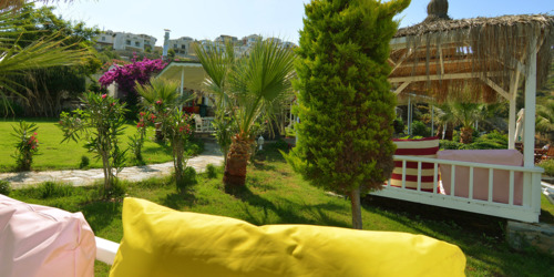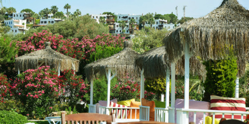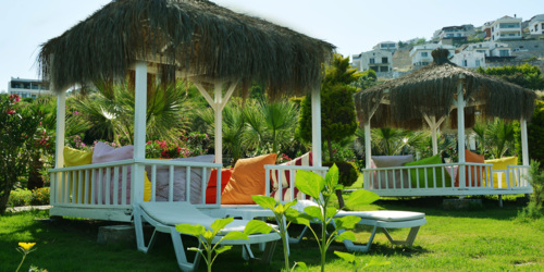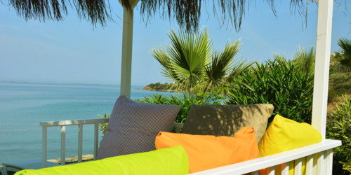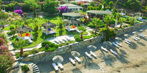 Situé dans de jolis jardins paysagers avec des terrasses pour les chaises longues et des cabines de plage avec des coussins dispersés confortables pour ceux qui préfèrent l'ombre.