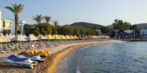 Située dans le nord-est de la péninsule de Bodrum, la ville n'est pas affectée par les vents du nord car elle est située dans un point très intérieur et abrité. C'est pourquoi Torba Beach abrite une mer sans vagues ou légèrement ondulée toute l'année.